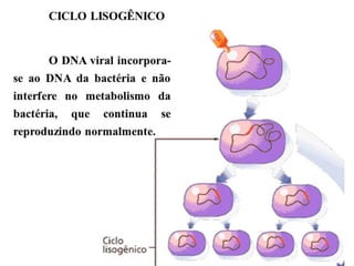 Ciclo lisogênico – (Não há rompimento) Os vírus injetam seu código
