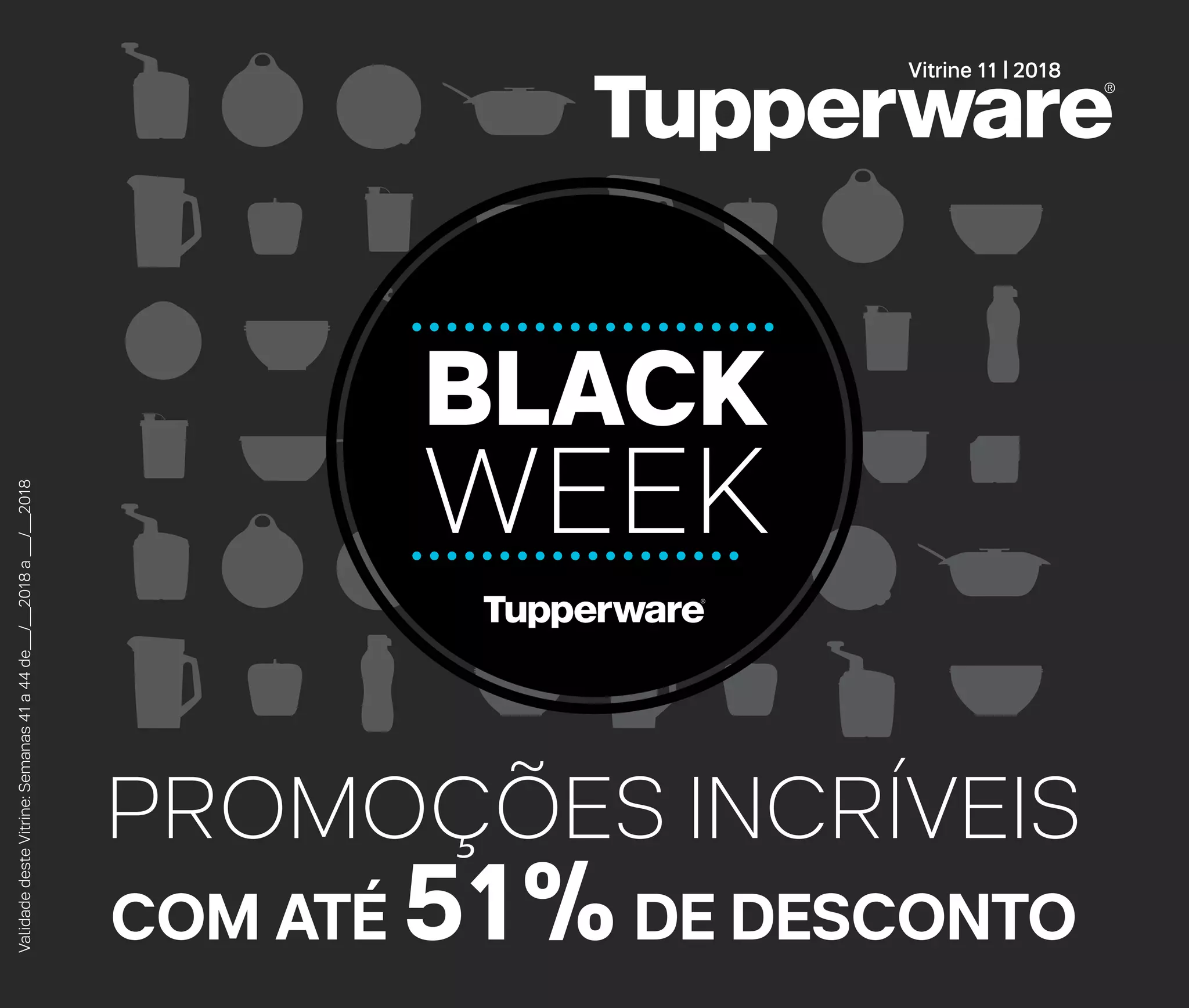 Este documento apresenta promoções de até 51% de desconto em produtos da Tupperware, com validade entre as semanas 41 a 44 de 2018. Oferece também brindes na compra de produtos selecionados e lançamentos como a Eco Tupper Twist para preparar sucos e águas aromatizadas.