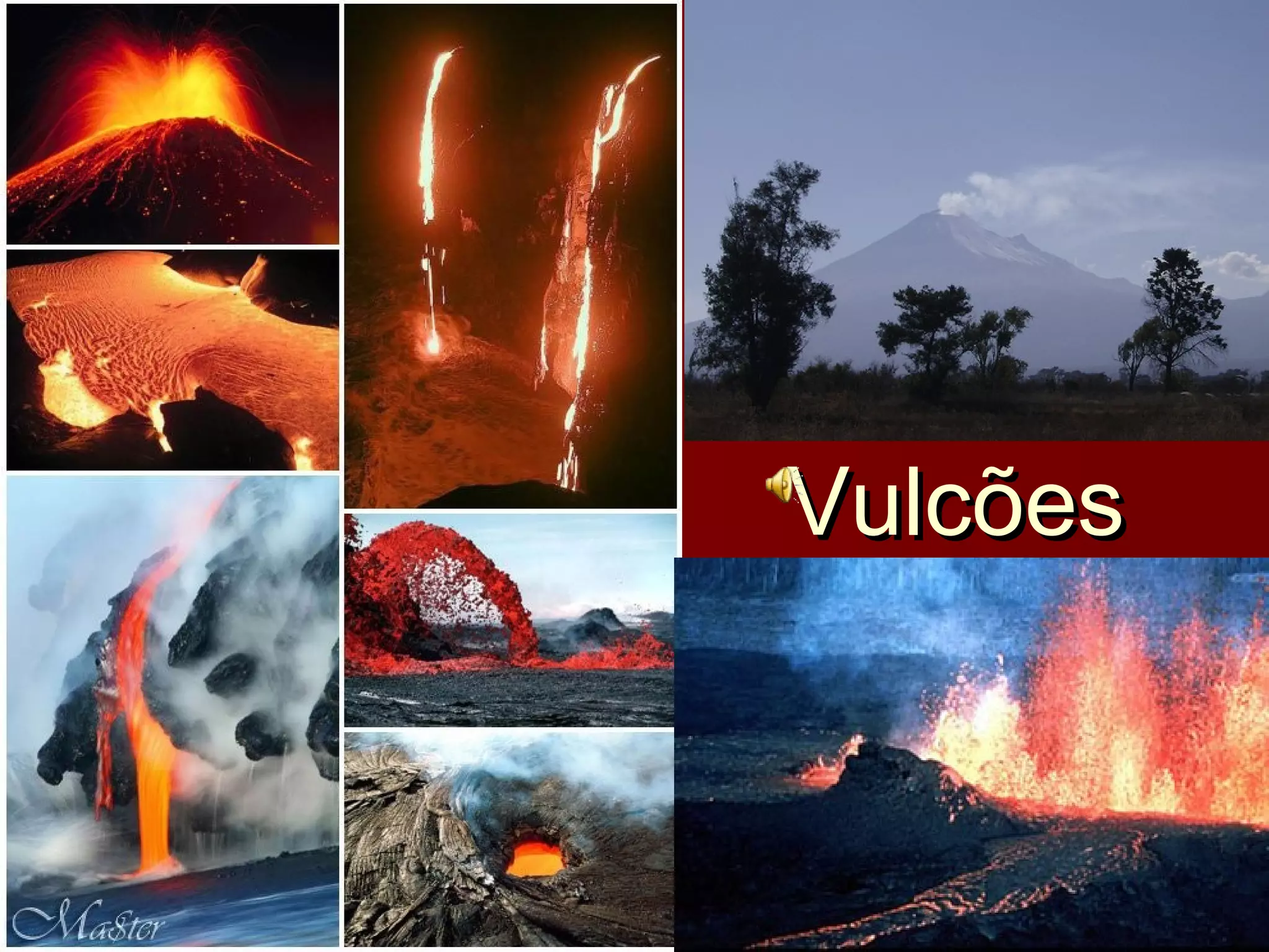 Vulcões são aberturas na crosta terrestre por onde são projetados gases, material elástico e magma do interior da Terra. Existem mais de 600 vulcões ativos e inativos no mundo, localizados principalmente nas regiões de contato entre placas tectônicas. Os produtos de erupções vulcânicas incluem lavas e rochas piroclásticas.