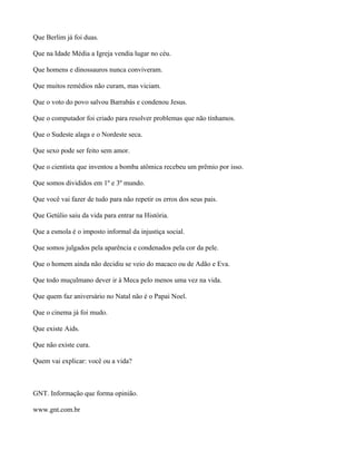 O documento apresenta um texto publicitário composto por uma única oração principal ("Quem vai explicar: você ou a vida?") complementada por várias orações subordinadas adverbiais de tempo e modo. O objetivo é alertar que existem muitos fatos que uma pessoa pode desconhecer e que só a vida ou a busca pelo conhecimento podem explicar.