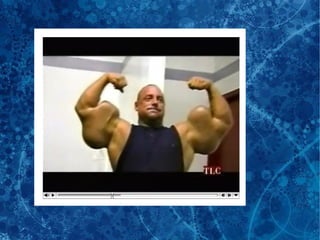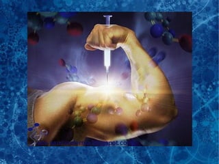 O documento descreve os efeitos dos anabolizantes no corpo humano, incluindo a inibição da produção natural de testosterona pelo cérebro, levando à atrofia dos testículos e redução na produção de espermatozóides. Também menciona problemas cardíacos como hipertrofia do miocárdio e maior risco de infarto, além de alterações temporárias no metabolismo do usuário.