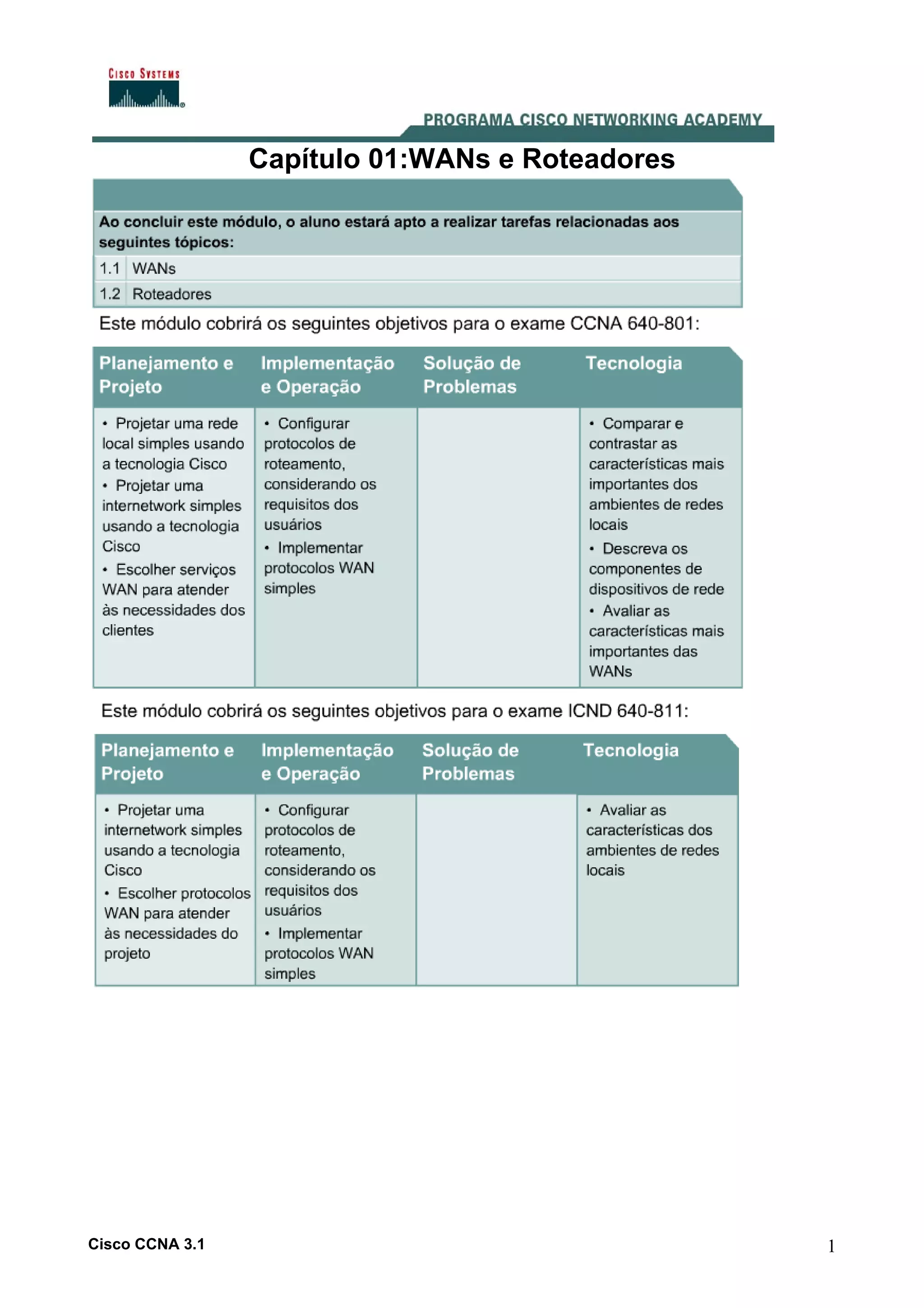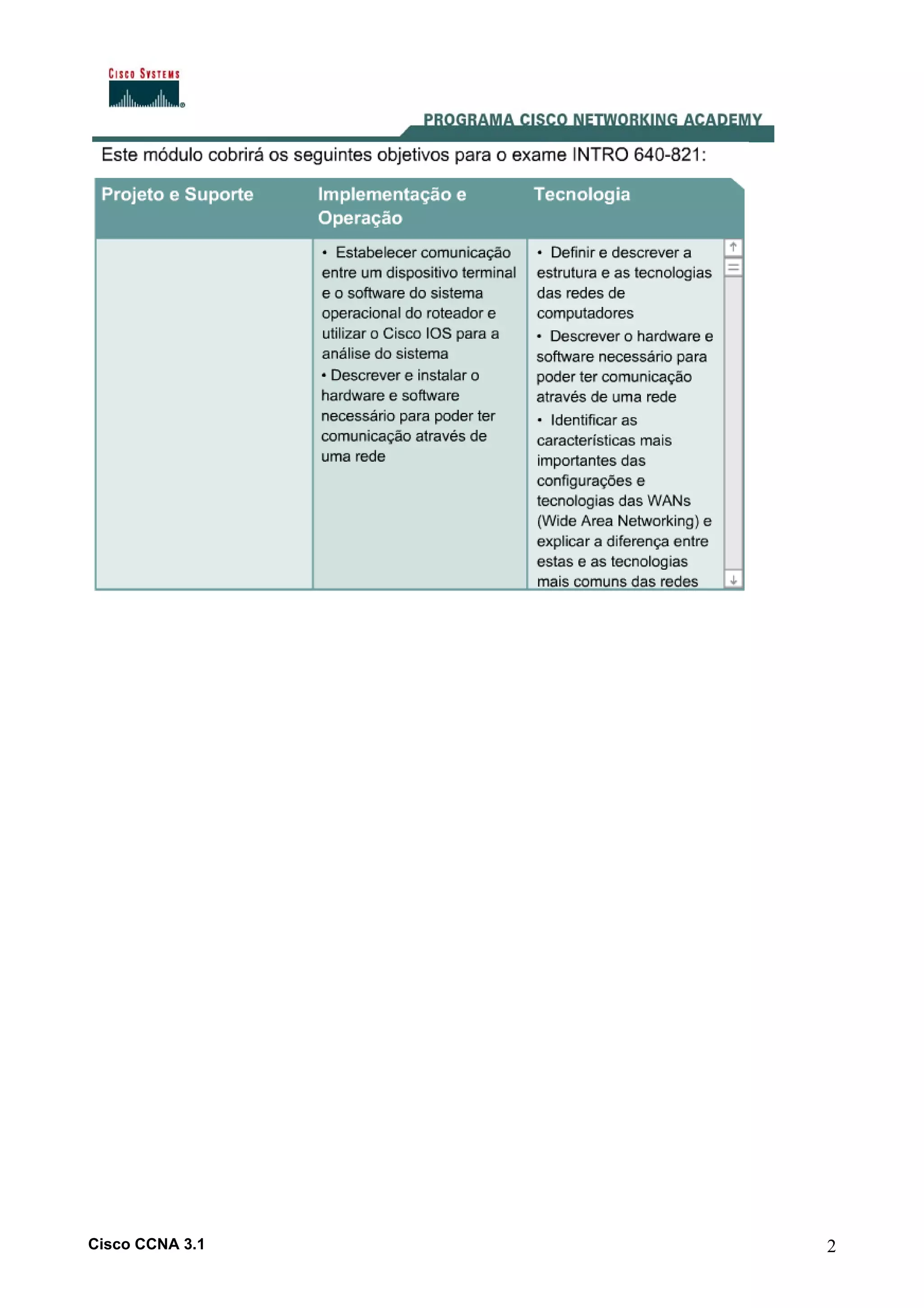para configurar roteadores e gerenciar redes roteadas. Este módulo oferece um exame