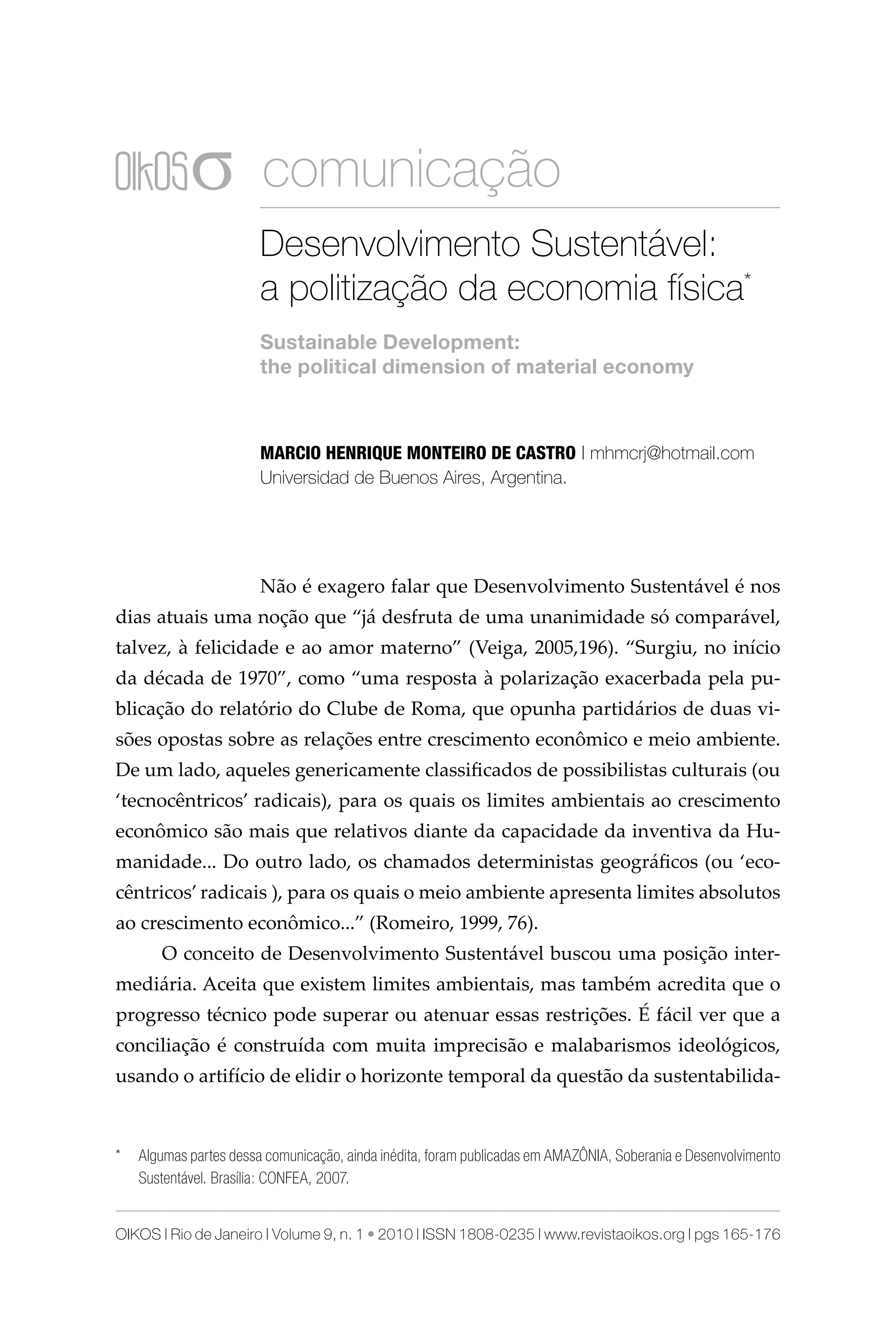 1) O desenvolvimento sustentável visa conciliar crescimento econômico com preservação ambiental, porém faz isso de forma imprecisa e ideológica, elidindo os horizontes temporais e limites reais da natureza.