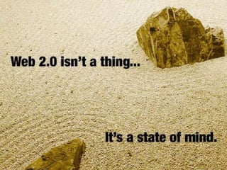 O documento discute a mudança da Web 1.0 para a Web 2.0, caracterizada pela interatividade e colaboração dos usuários. A Web 2.0 permite a customização, compartilhamento e edição coletiva de conteúdo através de plataformas como blogs, wikis e redes sociais. Ela pode ser usada como ferramenta pedagógica para envolver alunos nativos digitais na criação e compartilhamento de conteúdo.