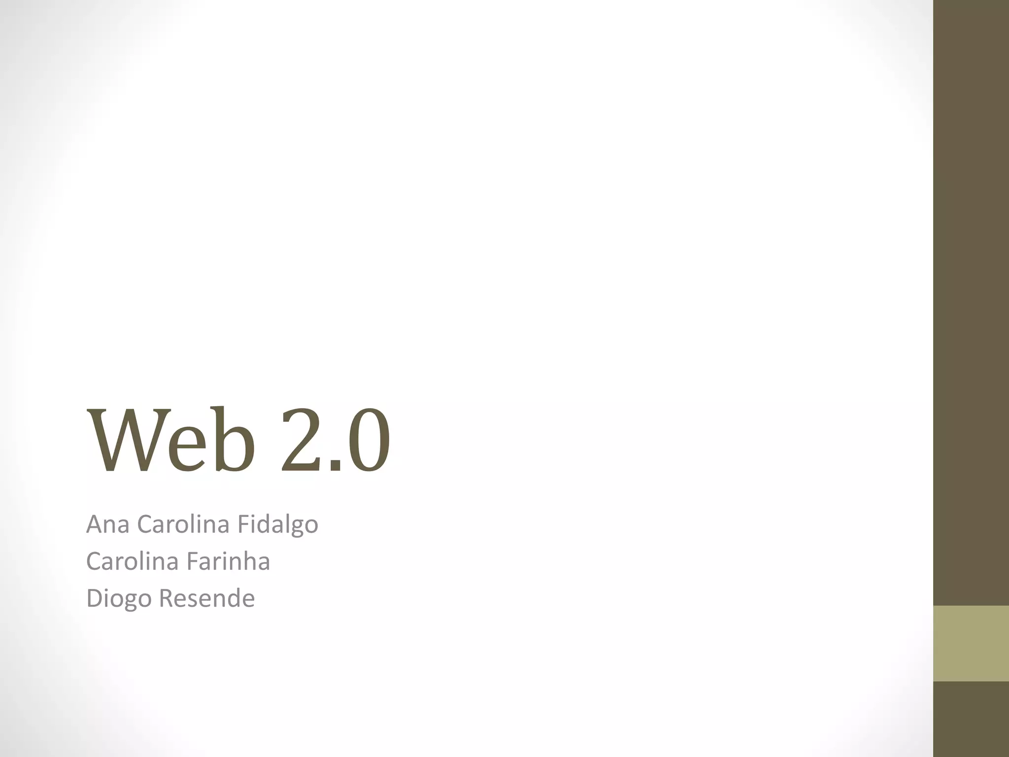 Este documento discute o conceito de Web 2.0, definindo-a como uma evolução da Web de um ambiente de um para muitos para um universo online colaborativo e interativo de muitos para muitos. Analisa também ferramentas da Web 2.0 como SoundCloud, Google Maps e Moodle, destacando suas vantagens e desvantagens para os usuários.