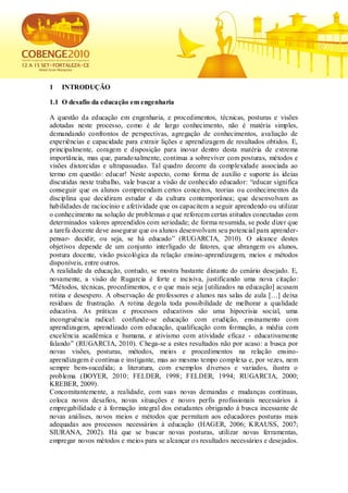 O documento apresenta o projeto "Energia Inteligente", que utiliza ferramentas da Web 2.0 para promover discussões sobre questões energéticas entre estudantes de engenharia e o público em geral. O projeto usa um blog para publicar conteúdo diariamente sobre energia e receber comentários e debates. Seu objetivo é complementar a formação técnica dos alunos com discussões sobre problemas e assuntos atuais relacionados à área.