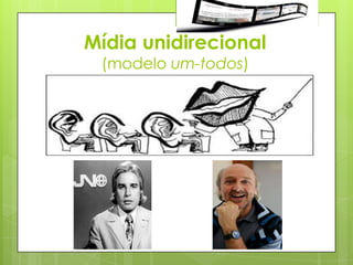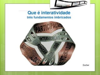 O documento discute a Web 2.0 e a aprendizagem colaborativa, destacando as novas formas de interação e participação possibilitadas por tecnologias digitais. A ênfase recai sobre o papel das redes sociais e a inteligência coletiva, bem como as estratégias de aprendizagem que promovem o compartilhamento e a cooperação entre os usuários. Além disso, menciona a importância de plataformas como blogs, wikis e ambientes virtuais na educação e na formação profissional.