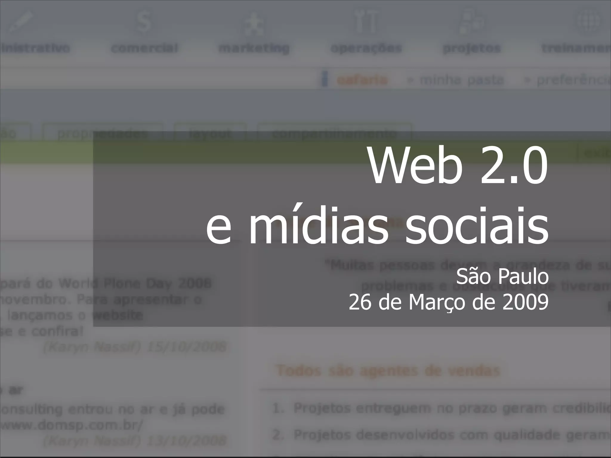O documento apresenta um resumo de uma palestra sobre Web 2.0 e mídias sociais. A palestra aborda tópicos como portais corporativos colaborativos, definição de Web 2.0, lições e receitas de sucesso para implementação de soluções Web 2.0 nas organizações. O palestrante destaca a importância da colaboração, edição do conteúdo e mentalidade ágil para o sucesso de portais e soluções Web 2.0.