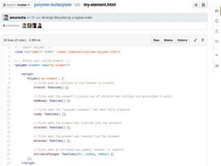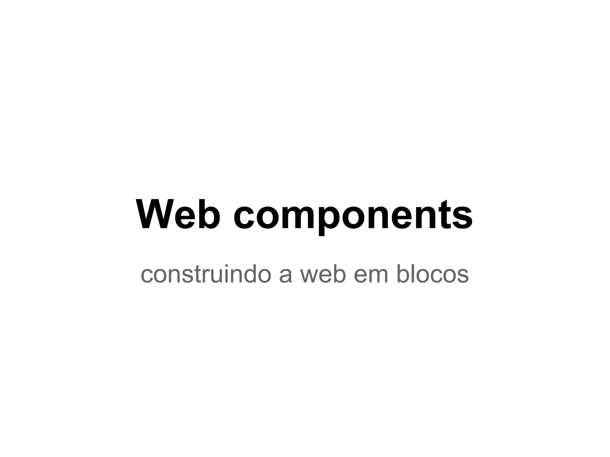 Web components permitem a reutilização de código através da criação de blocos reutilizáveis na web. Podem ser implementados de forma nativa com HTML, ou através de bibliotecas como Polymer que facilitam a criação e uso de componentes personalizados. Componentes também podem ser usados no lado servidor para compartilhar funcionalidades entre aplicações.
