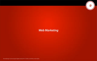Web marketing envolve aplicar estratégias de marketing na web para promover negócios, incluindo gerar tráfego, qualificar audiências e criar estratégias para potencializar campanhas. A Kronedesign tem experiência em sites, e-mail marketing, publicidade digital e redes sociais.