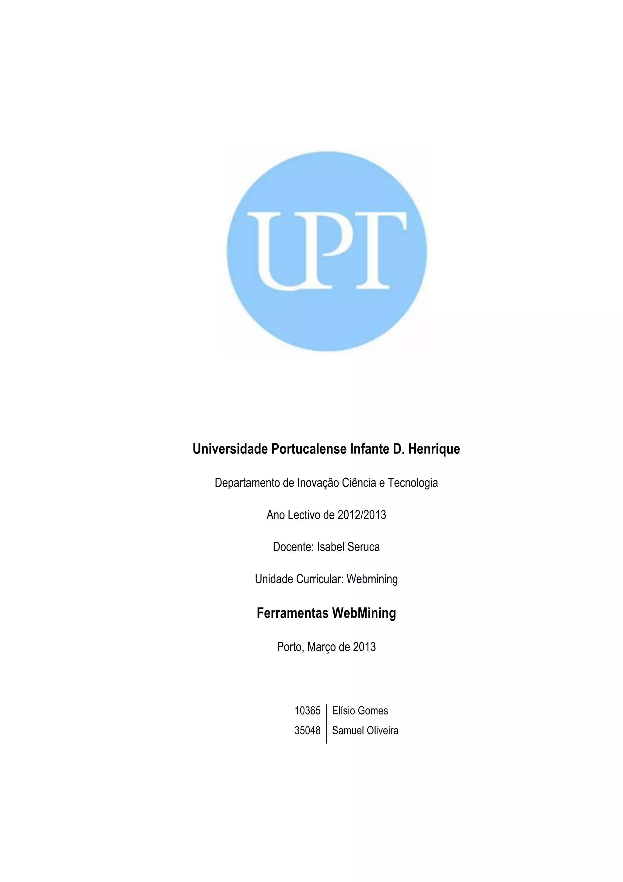 O documento descreve ferramentas de web mining SAS e Google Analytics. Discute os conceitos de web content mining, web structure mining e web usage mining. Descreve as funcionalidades do SAS e Google Analytics, incluindo dashboards, tagging, relatórios personalizados e análises de conteúdo, redes sociais, dispositivos móveis e publicidade. Fornece um quadro comparativo das duas ferramentas.