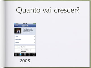 O documento discute as opções para desenvolvimento de aplicativos móveis, incluindo nativas, híbridas e web. Apresenta as vantagens e desvantagens de cada abordagem e ressalta que a escolha da melhor opção depende dos recursos disponíveis e do crescimento esperado para o projeto, sem que uma solução deva ser vista como definitiva.