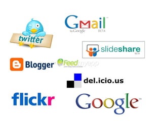 O documento discute vários aspectos da Web 2.0, incluindo como os usuários criam e compartilham conteúdo, a inteligência coletiva gerada pelos dados das pessoas na internet, e vários recursos e ferramentas como marcadores sociais, blogs, wikis e sites para compartilhamento de fotos, vídeos e arquivos.