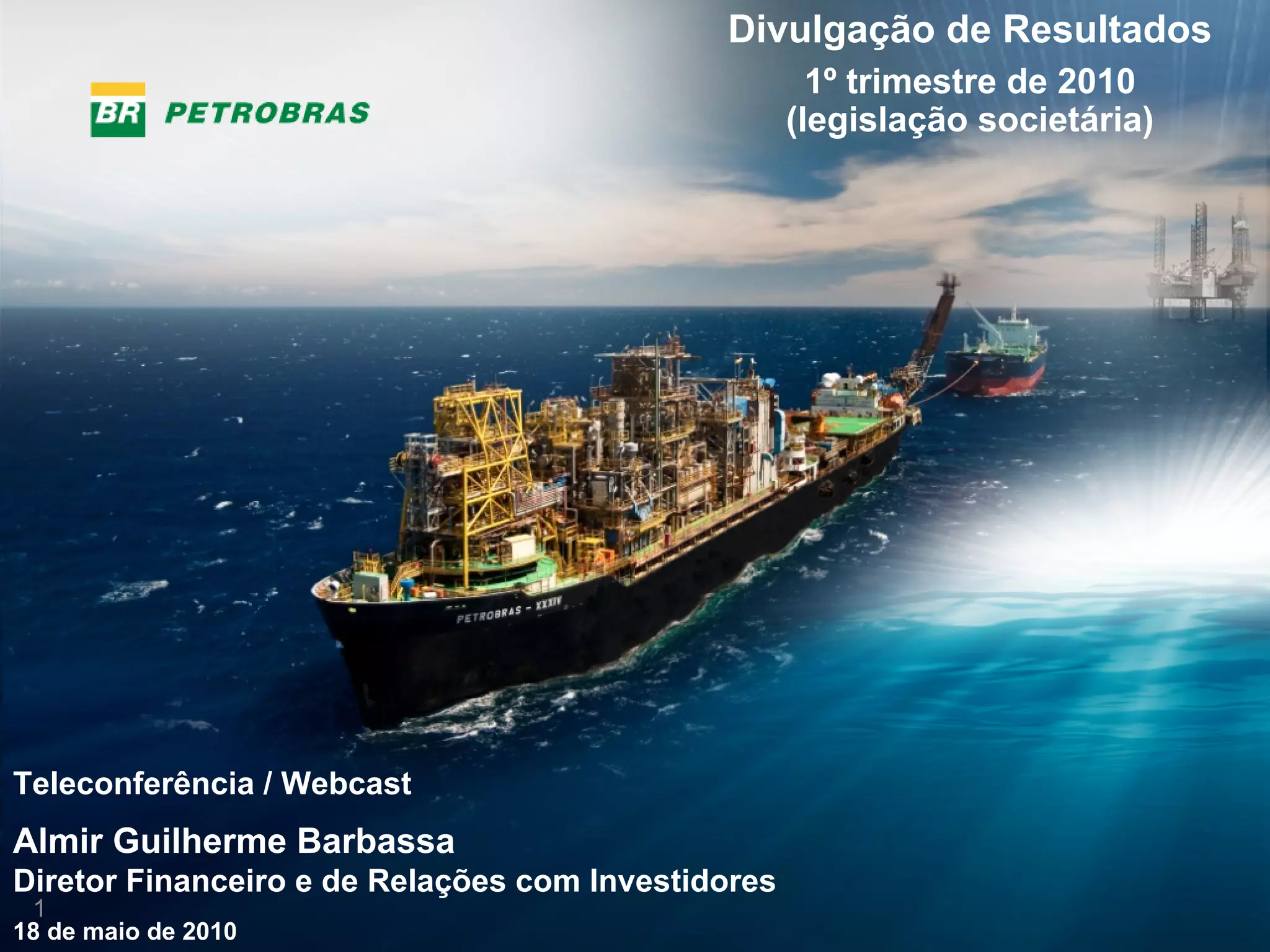 DESTAQUES: Principais acontecimentos no1T10 o EBITDA atinge R$ 15,1 bilhões crescendo 5% no comparativo 1T10 vs 4T09. Lucro Líquido aumentou 4% em relação ao 4T09, alcançando R$ 7,7 bilhões o Crescimento na produção com recorde diário de 2.084 mil bpd em abril o Investimentos no trimestre totalizaram R$ 17.753 milhões o Início do Teste de Longa Duração das áreas de Tiro e Sídon, na Bacia de Santos (03/2010) o Descoberta de petróleo no pós-sal e pré-sal no campo de Barracuda (Bacia de Campos - 02/2010) e de óleo leve no campo de Piranema (Bacia de Sergipe - 03/2010) o Aprovação pelo Conselho de Administração de faixa de CAPEX para o Plano de Negócios 2010-2014 de US$ 200-220 bilhões (03/2010) e do processo de capitalização da Companhia até julho/2010 3