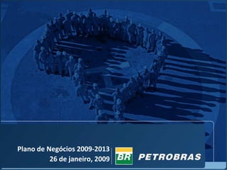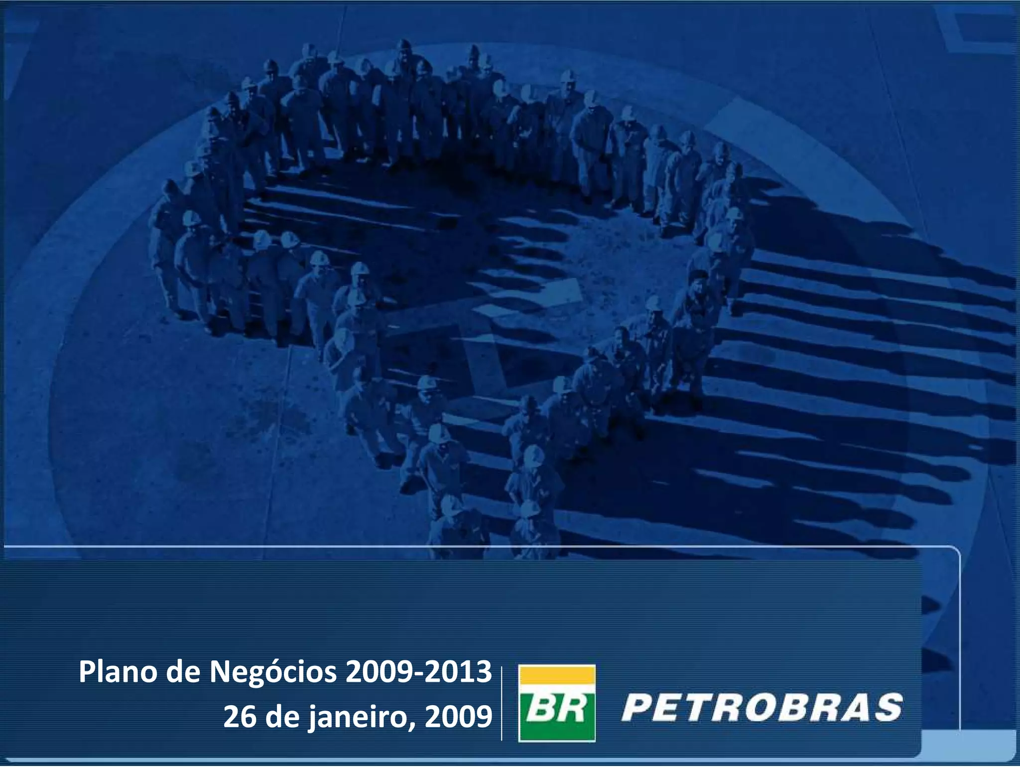 Este documento apresenta o plano de negócios da empresa para o período de 2009 a 2013. Ele destaca os excelentes resultados da empresa desde 2007, como o aumento de produção e reservas provadas. O documento também enfatiza os grandes investimentos da empresa em pesquisa e desenvolvimento e sua liderança na produção em águas profundas, com a visão estratégica de se tornar uma das cinco maiores empresas integradas de energia do mundo até 2020.