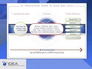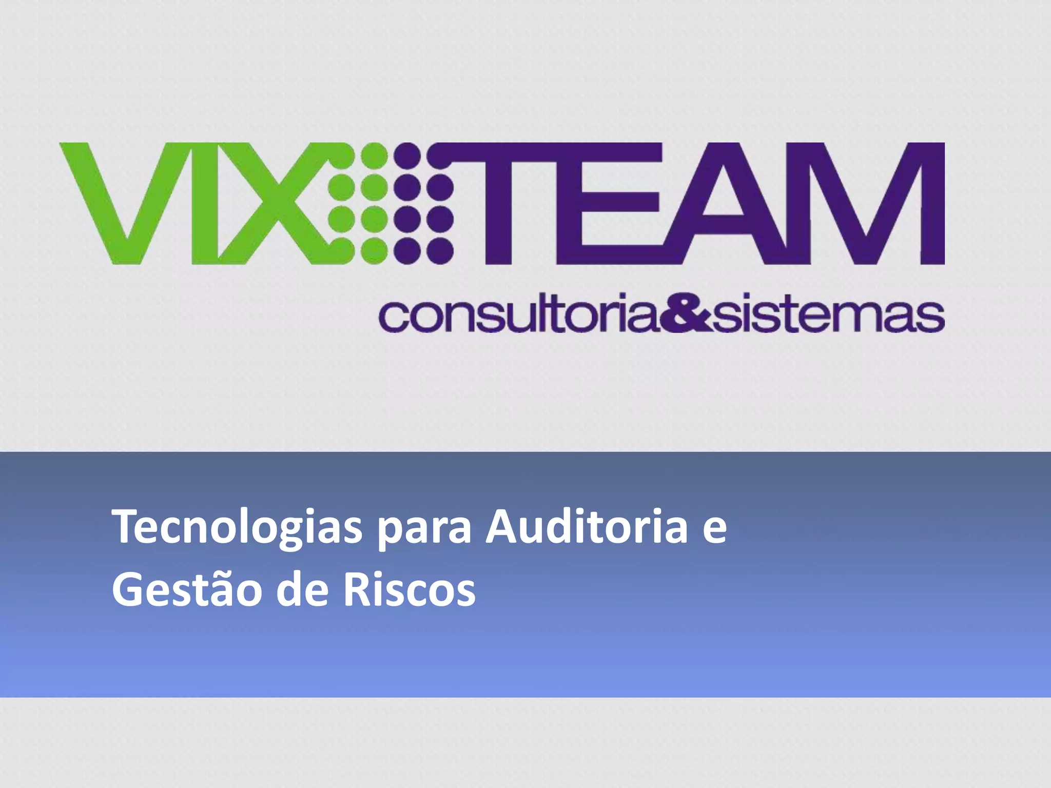 O documento descreve soluções de software para auditoria e gestão de riscos da empresa CaseWare IDEA. A ferramenta IDEA permite análise de dados, automação de tarefas repetitivas, e geração de relatórios para auditoria de forma simples e segura. A empresa VixTeam oferece serviços como treinamento, consultoria e suporte técnico para a ferramenta IDEA.