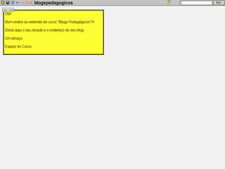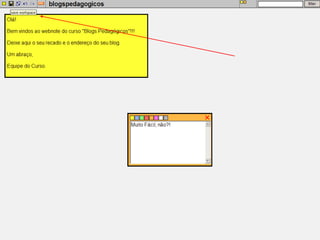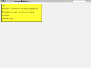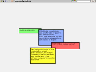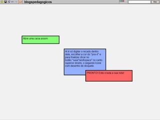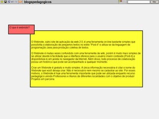 O documento fornece um link para acessar um webnote específico sobre cursos de blogs pedagógicos. Os usuários devem escolher o nome do webnote e clicar em 'load webnote' para visualizá-lo. O endereço da webnote é http://www.aypwip.org/webnote/blogspedagogicos.