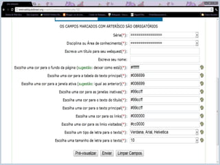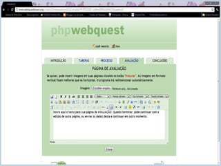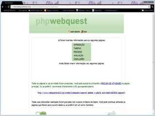 3) Uma WebQuest tipicamente contém 5 etapas: introdução, tarefa, processo, avaliação e conclusão.