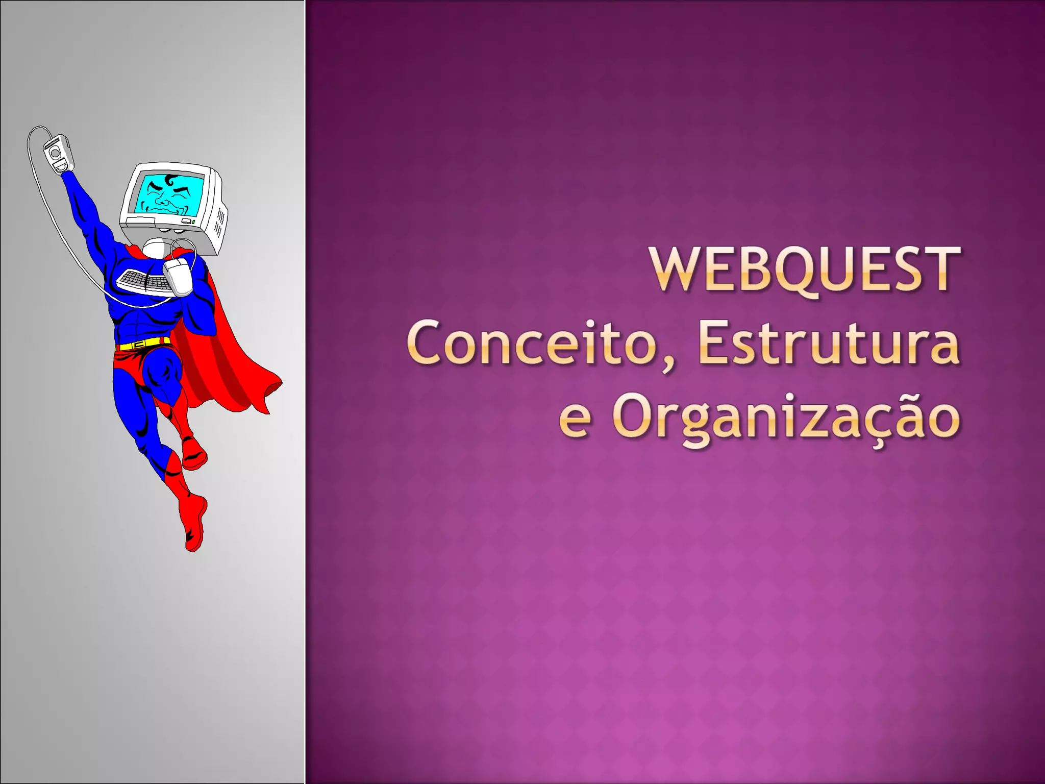 Este documento descreve um modelo educativo baseado na aprendizagem cooperativa utilizando recursos da internet chamado WebQuest. O WebQuest é uma atividade de pesquisa onde os alunos interagem com informações na internet para produzir um produto final, promovendo o pensamento crítico e o desenvolvimento de habilidades.