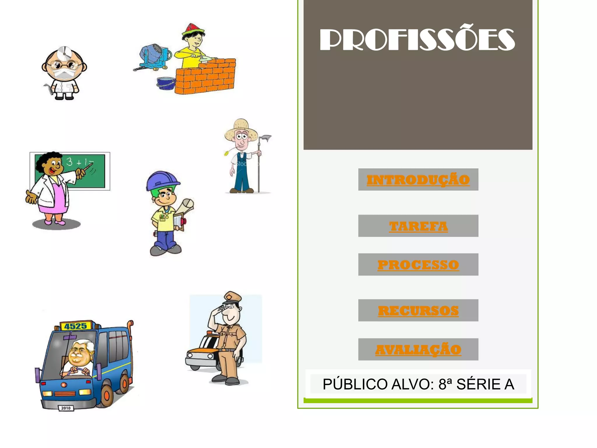 Este documento fornece instruções para uma atividade sobre profissões passadas, presentes e futuras. Os alunos devem pesquisar profissões de suas famílias e construir gráficos comparando a importância de diferentes profissões ao longo do tempo.