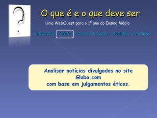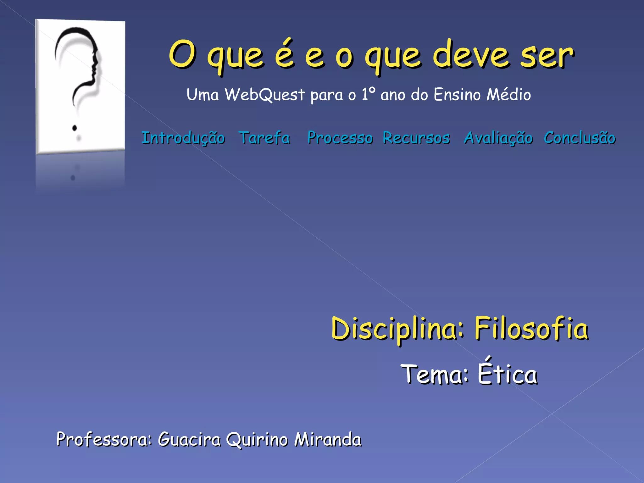 A professora Guacira apresenta um trabalho sobre ética para os alunos, que envolve compreender conceitos éticos, analisar uma charge sobre ética, selecionar e analisar notícias sob uma perspectiva ética, e refletir sobre como a ética pode ajudar nas ações cotidianas.