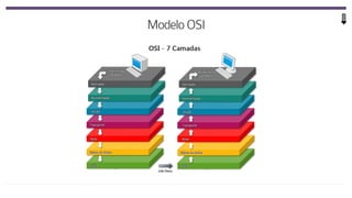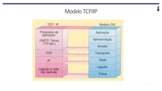 O documento descreve o Modelo OSI, que divide as redes de computadores em 7 camadas para garantir a comunicação entre sistemas de forma padronizada. Ele também explica os protocolos TCP e UDP da camada de transporte do modelo TCP/IP, além de introduzir o conceito de sockets e WebSockets.