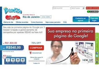 1. O documento discute estratégias de otimização de mecanismos de busca (SEO) de forma a melhorar o posicionamento orgânico de sites. 2. Ele explica conceitos importantes como palavras-chave, links, popularidade e conteúdo relevante. 3. Também aborda práticas negativas de SEO conhecidas como "Black Hat" que devem ser evitadas.