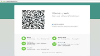 O documento descreve as principais funcionalidades do aplicativo WhatsApp, incluindo mensagens de texto e mídia, chamadas gratuitas, grupos, transmissões em massa, status e configurações. Também explica como usar o WhatsApp Web para acessar o aplicativo no computador através de um código QR.
