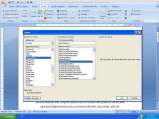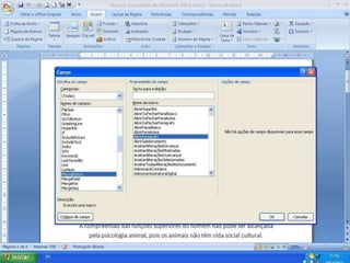 O documento discute editores de texto e softwares de escritório. Apresenta as definições de licença de software, software proprietário e livre. Também discute as diferenças entre o BrOffice Writer e o Microsoft Word.