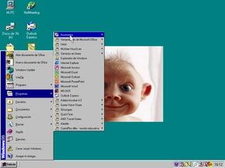 Este documento apresenta um curso introdutório sobre o Windows para funcionários públicos de maneira humorística. Explica brevemente o botão Iniciar, a barra de tarefas, o relógio e o acesso ao correio eletrônico. Adverte sobre não mexer nas configurações do sistema e manter a lixeira vazia. Finaliza dizendo que o objetivo do Windows é tornar as tarefas mais fáceis no escritório e em outros lugares.