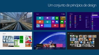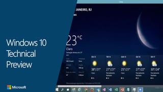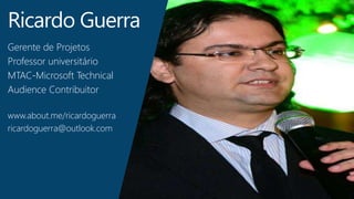 O documento descreve a carreira de Ricardo Guerra como gerente de projetos e professor universitário, com experiência na Microsoft. Detalha também as principais mudanças de interface do usuário introduzidas pela Microsoft ao longo dos anos, culminando nas inovações do Windows 10.