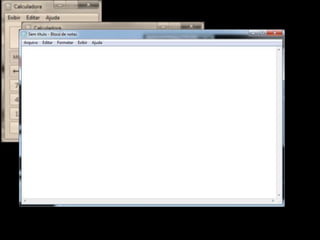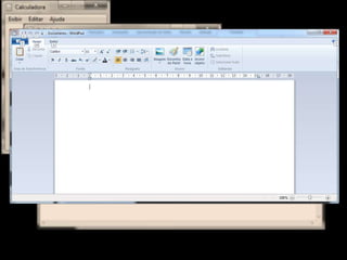 O documento fornece uma introdução básica sobre conceitos fundamentais do sistema operacional Windows, incluindo a área de trabalho, pastas, arquivos, unidades de medida e acessórios como Paint e Bloco de Notas. Explica que a área de trabalho contém ícones, papel de parede e botões de inicialização, e que pastas organizam arquivos sem tipo ou tamanho definido, ao contrário de arquivos que possuem tipo e tamanho. Também define unidades de medida como bit, byte, kilobyte e gigabyte e explica que 8 bits