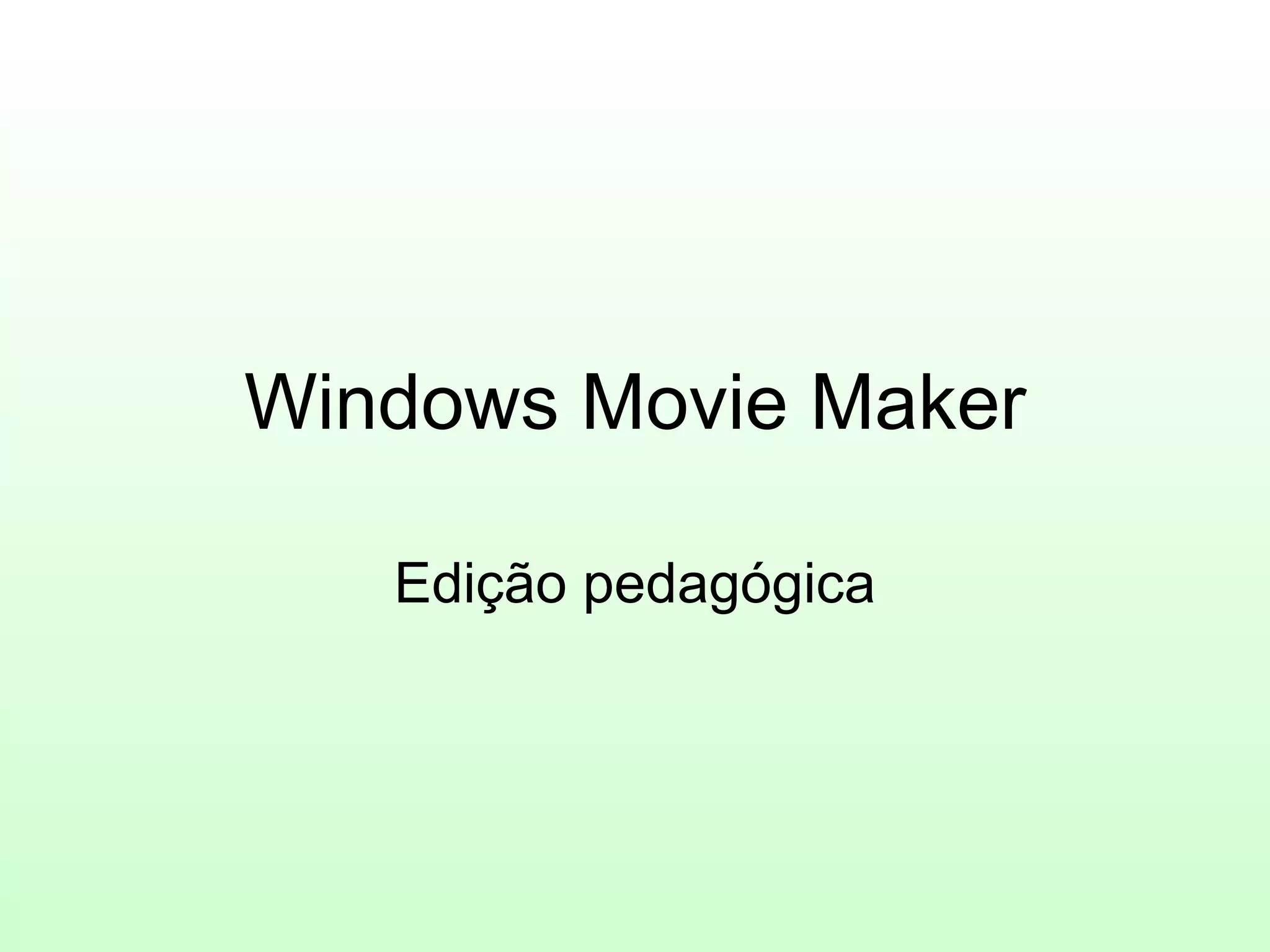 O documento descreve o programa Windows Movie Maker, que permite editar filmes de forma simples arrastando e soltando elementos. Ele pode ser usado para criar filmes, clipes musicais, charges animadas, stop motions e propagandas. O documento também lista os tipos de arquivos de áudio, imagem e vídeo que podem ser importados e fornece um exemplo de oficina sobre edição de um vídeo de campanha de trânsito.