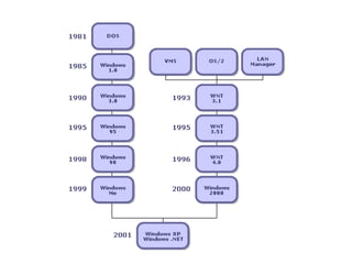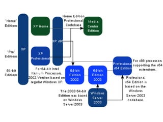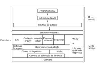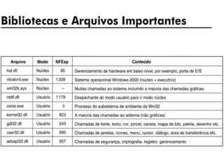O documento descreve a história do Windows XP, incluindo seu codinome "Whistler", versões lançadas, quota de mercado, arquitetura de núcleo híbrido, versões disponíveis e ciclo de vida de suporte até 2014. Ele também discute a interface gráfica Lua, sistema de arquivos suportados e comunicação com outros sistemas operacionais.