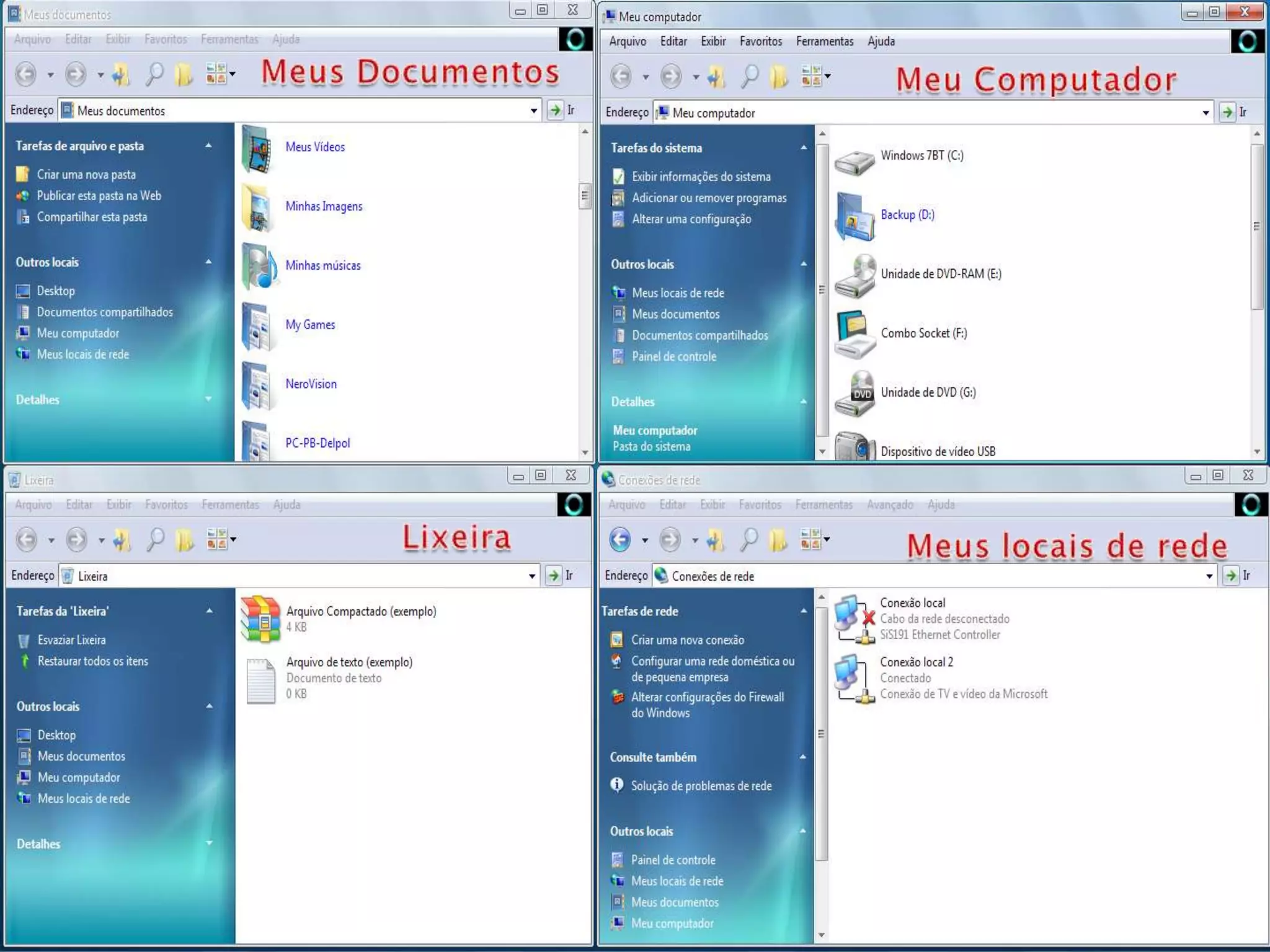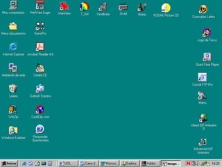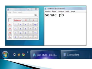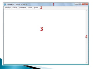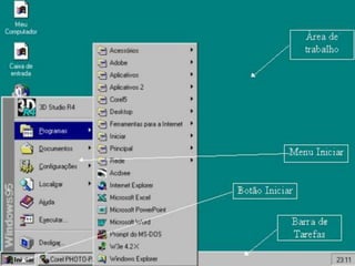 3) O Windows possui recursos como área de trabalho, menu iniciar, barra de tarefas e janelas que facilitam a interação com o usuário.