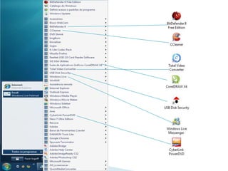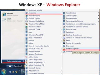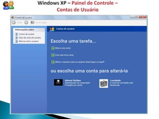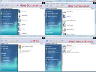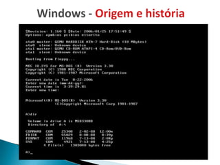 O documento discute os principais aspectos dos sistemas operacionais Windows, incluindo: