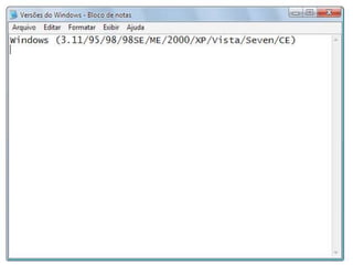 2) Versões importantes do Windows incluem o Windows 3.1, Windows 95, Windows XP e Windows 7.