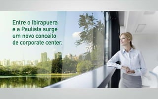 O documento apresenta informações sobre um projeto imobiliário, Win Work Ibirapuera, que destaca sua localização privilegiada e características arquitetônicas inovadoras. O empreendimento oferece um open mall, diversas opções de layout para escritórios, e diferenciais sustentáveis, visando eficiência energética. Além disso, menciona a valorização do imóvel e a possibilidade de investimento, ressaltando a tradição e qualidade das construtoras envolvidas.