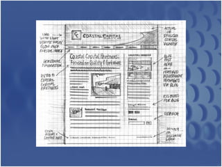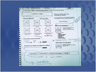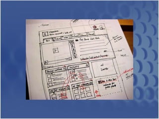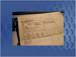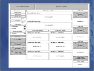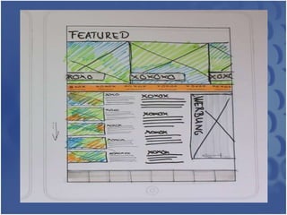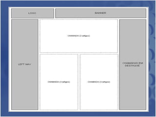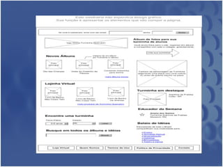 O documento discute wireframes, que são modelos estruturais de baixa fidelidade visual usados no desenvolvimento de sites. Eles indicam a estrutura de conteúdo e a interação do usuário antes do design visual. Wireframes podem variar em detalhamento e são criados em softwares específicos para auxiliar a produção do site de forma rápida e eficiente.