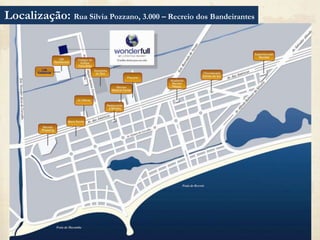 O documento descreve um condomínio residencial localizado no Recreio dos Bandeirantes, composto por 512 unidades distribuídas em 8 blocos e com uma vasta área de lazer de 5.000 m². O empreendimento oferece várias comodidades, incluindo segurança 24 horas, tecnologia Wi-Fi, carregadores para carros elétricos e uma abordagem sustentável com energia eólica. Os apartamentos são projetados para conforto e modernidade, com a obra sendo supervisionada por uma comissão de condôminos para garantir segurança aos compradores.