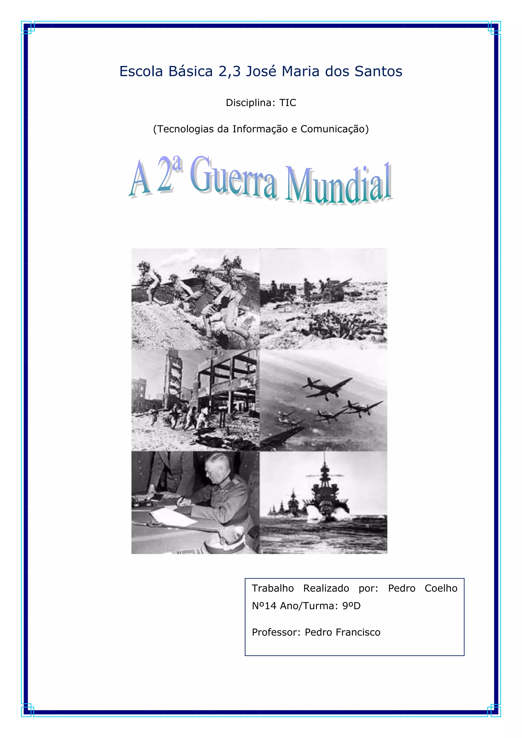 A Segunda Guerra Mundial foi um conflito global de 1939 a 1945 envolvendo a maioria das nações do mundo divididas em duas alianças: os Aliados e o Eixo. O documento descreve as causas e o desenvolvimento da guerra, incluindo a invasão da Polônia e da União Soviética pela Alemanha, a guerra relâmpago, a reconquista da Europa pelos Aliados e o ataque japonês a Pearl Harbor, culminando na rendição do Japão em 1945.
