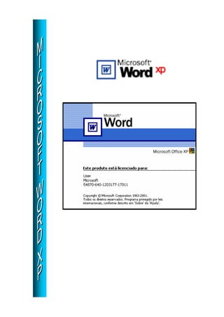 O documento apresenta o Microsoft Office Word XP, descrevendo seus principais elementos e funções. No primeiro parágrafo, explica que o Word substitui o WordPad e foi aprimorado ao longo das versões. No segundo parágrafo, descreve que o Word XP faz parte do pacote Microsoft Office XP. Nos parágrafos seguintes, detalha os principais elementos da interface do Word XP, como barras de menu, ferramentas e status.