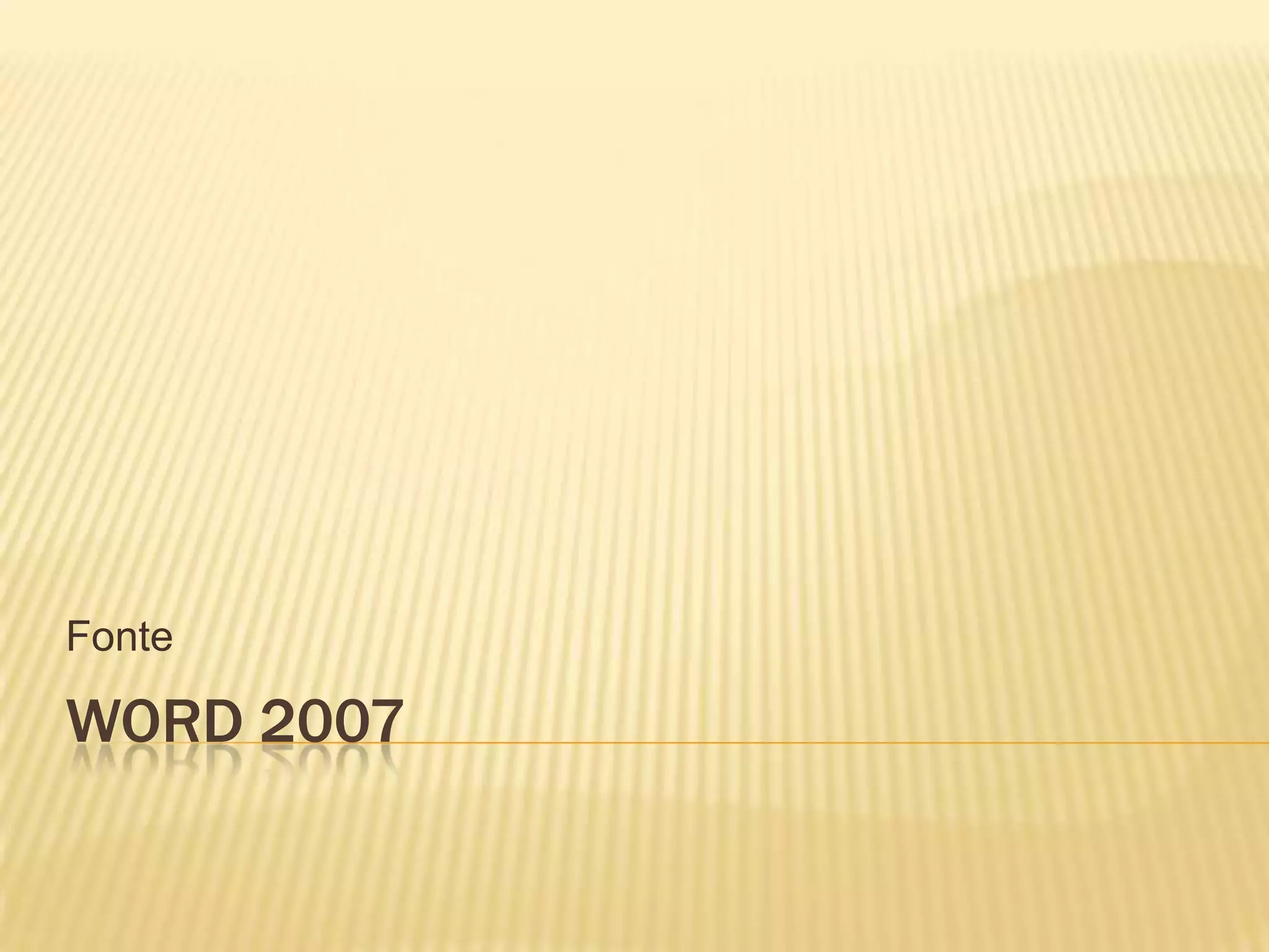 O documento descreve as fontes no Word 2007, incluindo como alterar o tipo, tamanho e efeitos de fonte como negrito e itálico. Ele também lista atalhos de teclado para formatar fontes e abrir a janela Fontes, onde todos os efeitos podem ser aplicados.
