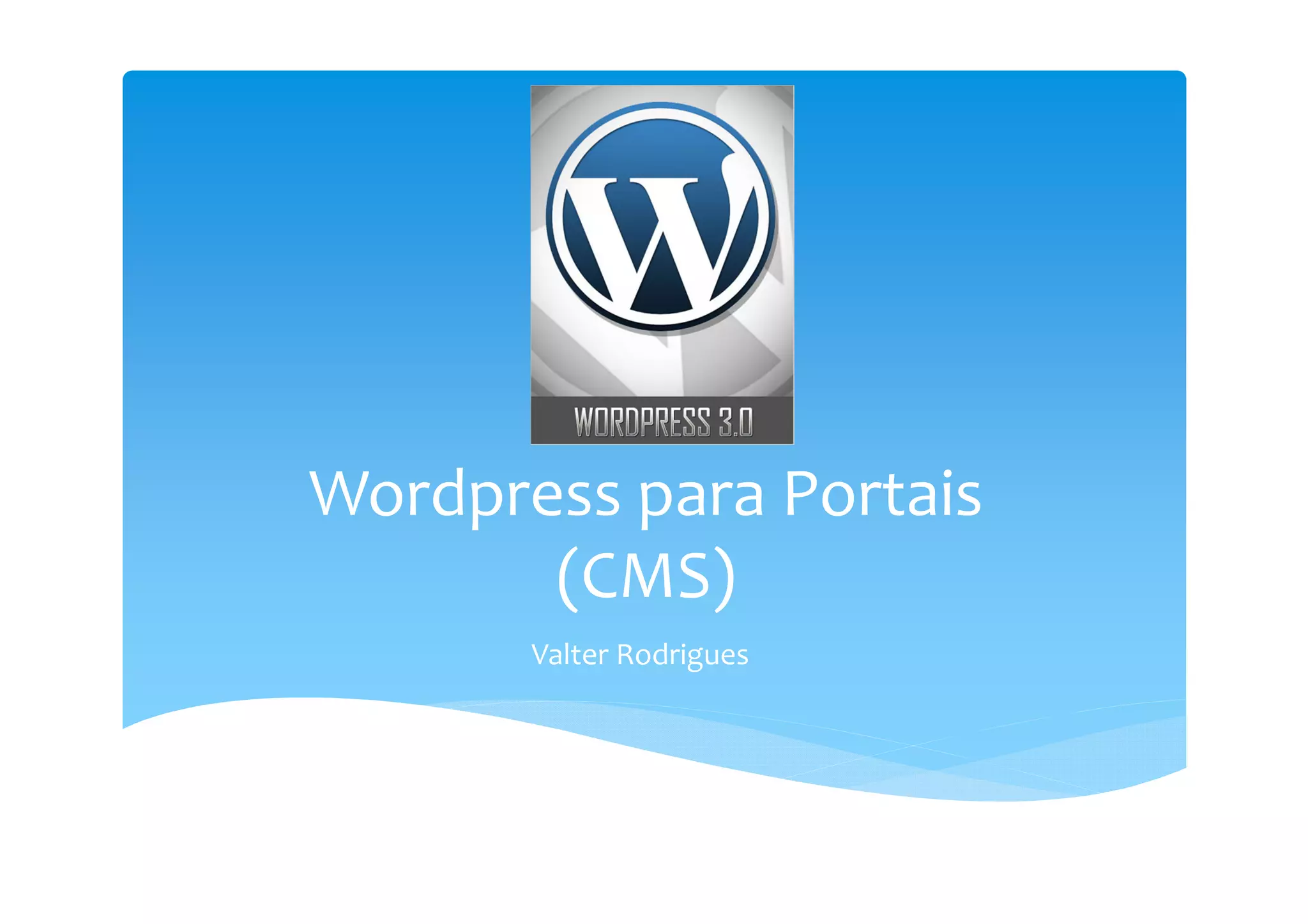 O documento discute o uso do WordPress como sistema de gerenciamento de conteúdo (CMS) para portais. Ele explica que o WordPress facilita a criação, edição, atualização e publicação de conteúdo na web através de um navegador. Também descreve como o WordPress evoluiu desde sua criação em 2003 e como pode ser usado para estruturar portais com seções, páginas, posts e categorias, além de complementos úteis.