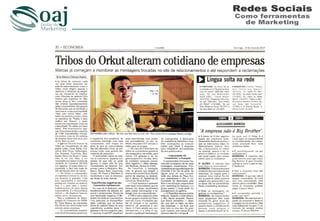 O documento resume o perfil profissional de Olimpio Araujo Junior, que possui experiência de mais de 14 anos nas áreas de marketing e vendas, tendo ocupado cargos como Representante Comercial, Gerente de Vendas, Coordenador Comercial, Gerente de Comunicação e Marketing e Diretor de Comunicação e Marketing. Atualmente é Diretor da OAJ Gestão de Marketing.
