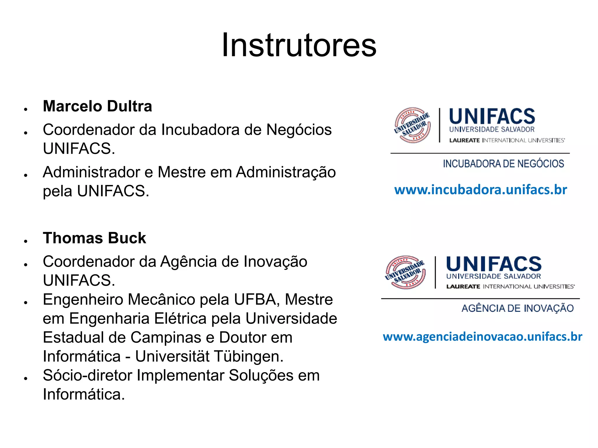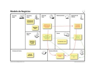 Este documento resume uma oficina sobre geração de modelos de negócios realizada por Marcelo Dultra e Thomas Buck. A oficina apresentou a metodologia Business Model Generation e seu processo de desenvolvimento de modelos de negócios. Os participantes praticaram a metodologia criando modelos de negócios para diferentes casos como GetNinjas, Metro e ZipCar.