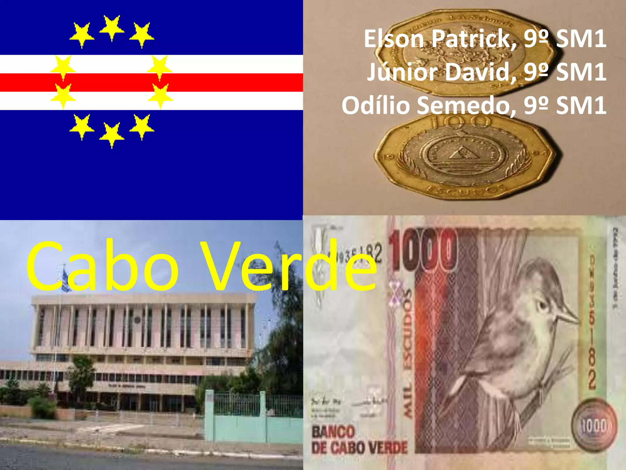 Este documento fornece informações gerais sobre Cabo Verde, incluindo sua localização, origem vulcânica das ilhas, número de ilhas, divisões, línguas faladas e moeda nacional.