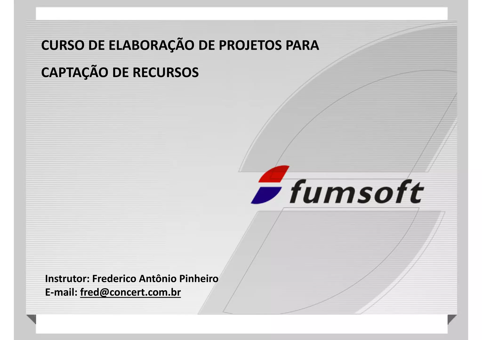 O documento descreve um curso sobre elaboração de projetos para captação de recursos, orientado por Frederico Antônio Pinheiro, com foco na inovação em microempresas e empresas de pequeno porte de Minas Gerais. O edital FAPEMIG 13/2013 - Tecnova visa financiar propostas que desenvolvam produtos e processos inovadores, detalhando requisitos, itens financiáveis e metodologias de apresentação. Também enfatiza a necessidade de um planejamento claro, justificativas adequadas e o compromisso das empresas envolvidas na execução dos projetos.