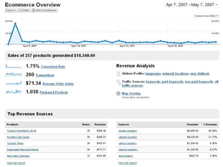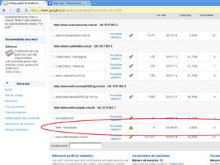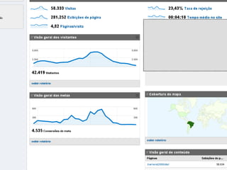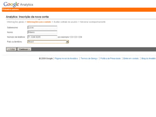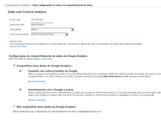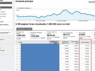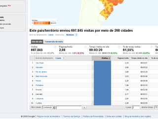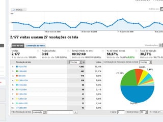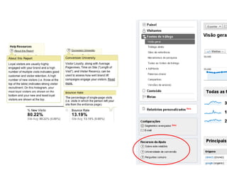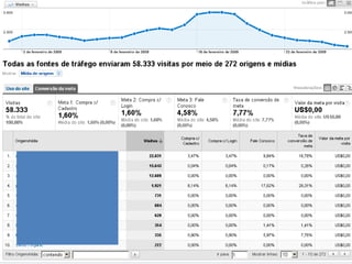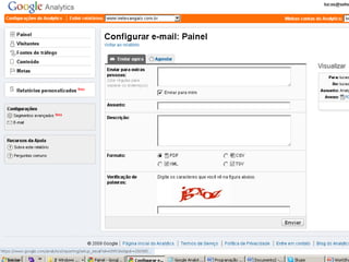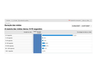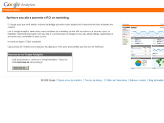 Este documento apresenta como o Google Analytics pode ser usado para medir o desempenho de sites e campanhas de marketing digital. Ele discute como o Google Analytics fornece métricas gratuitas e fáceis de usar para analisar o tráfego, conversões e desempenho de busca em sites. Também apresenta dicas sobre como usar corretamente as ferramentas do Google Analytics, como taggear campanhas e filtrar dados.