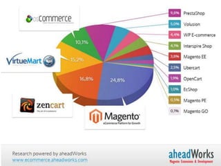 O documento é um guia completo sobre a plataforma Magento, incluindo instalação, configuração de pagamentos, métodos de envio e personalização. Ele fornece instruções detalhadas para desenvolver e gerenciar uma loja online usando Magento, abordando desde a instalação de plugins até ajustes de layout. O autor, Ari Stopassola Junior, destaca a importância de otimizações e integrações para melhorar a eficiência e a usabilidade da loja.
